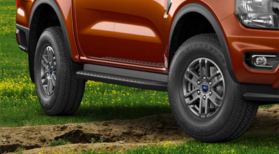 Lưới tản nhiệt màu đen mới kết hợp với đèn halogen dạng hình chữ C đặc trưng và đèn sương mù phía trước đậm chất Built Ford Tough.La zăng hợp kim